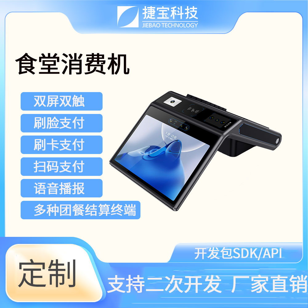 捷寶科技是國(guó)內(nèi)最早推出基于Android系統(tǒng)智能硬件的廠家之一。產(chǎn)品形態(tài)涵蓋手持、臺(tái)式、立式、掛式、柜式、單屏、雙屏;功能上圍繞NFC識(shí)別、條碼識(shí)別、生物識(shí)別,AI識(shí)別等技術(shù)大類(lèi),開(kāi)發(fā)出可識(shí)別CPU卡、M1卡、射頻卡、二代身份證、社??ā⒁痪S條碼掃描、掃碼支付、指紋識(shí)別、人臉識(shí)別、掌靜脈識(shí)別、虹膜識(shí)別、AI菜品識(shí)別、智能語(yǔ)音識(shí)別等功能的各類(lèi)產(chǎn)品。